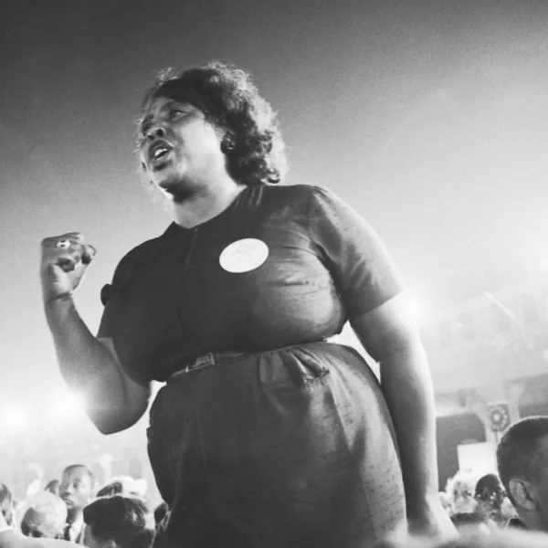 Fannie Lou Hamer speaking during the civil rights movement, embodying a tradition of faith-rooted moral authority and public witness.